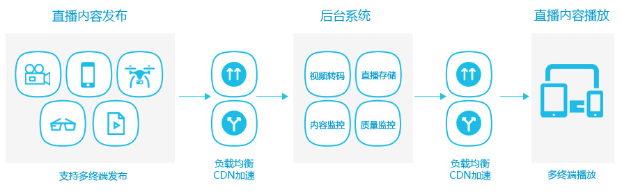 摄像机或其它设备实时采集到的现场画面,通过编码器或编码软件推送到直播服务器分发,用户即可通过PC、手机、平板电脑等多种终端实时观看现场直播内容。常用于年会、发布会、政企会议等的网络直播。